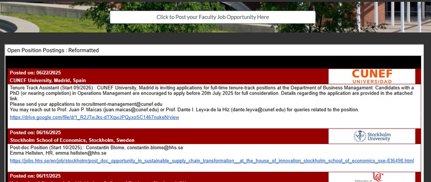• 1.  Reminder: JOM Job Board Complementary Postings